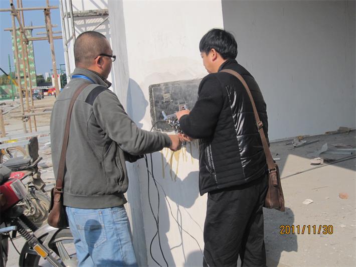 • 四川省檢測中心技術工程師對加固后施工質量進行安全拉拔檢測